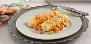 - canelone de frango com molho de tomate;