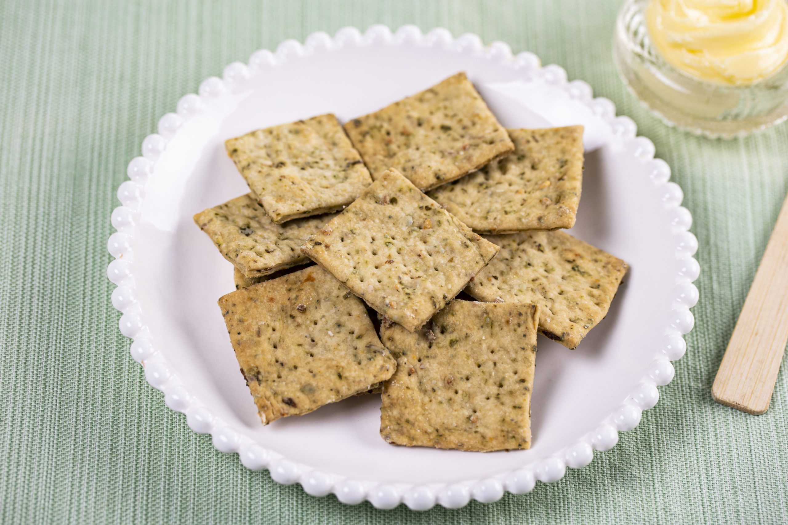 Em uma superfície lisa e enfarinhada, com o auxílio de um rolo, abra a massa em um quadrado (16 cm) com espessura 1 mm. Perfure a massa toda com um garfo e corte 12 quadrados de 4 cm.