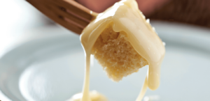 Harmonização:para chegar na textura perfeita, é importante combinar os pedaços de queijo com vinhos brancos secos, com boa acidez, ou frutados e um pouco de amido de milho;