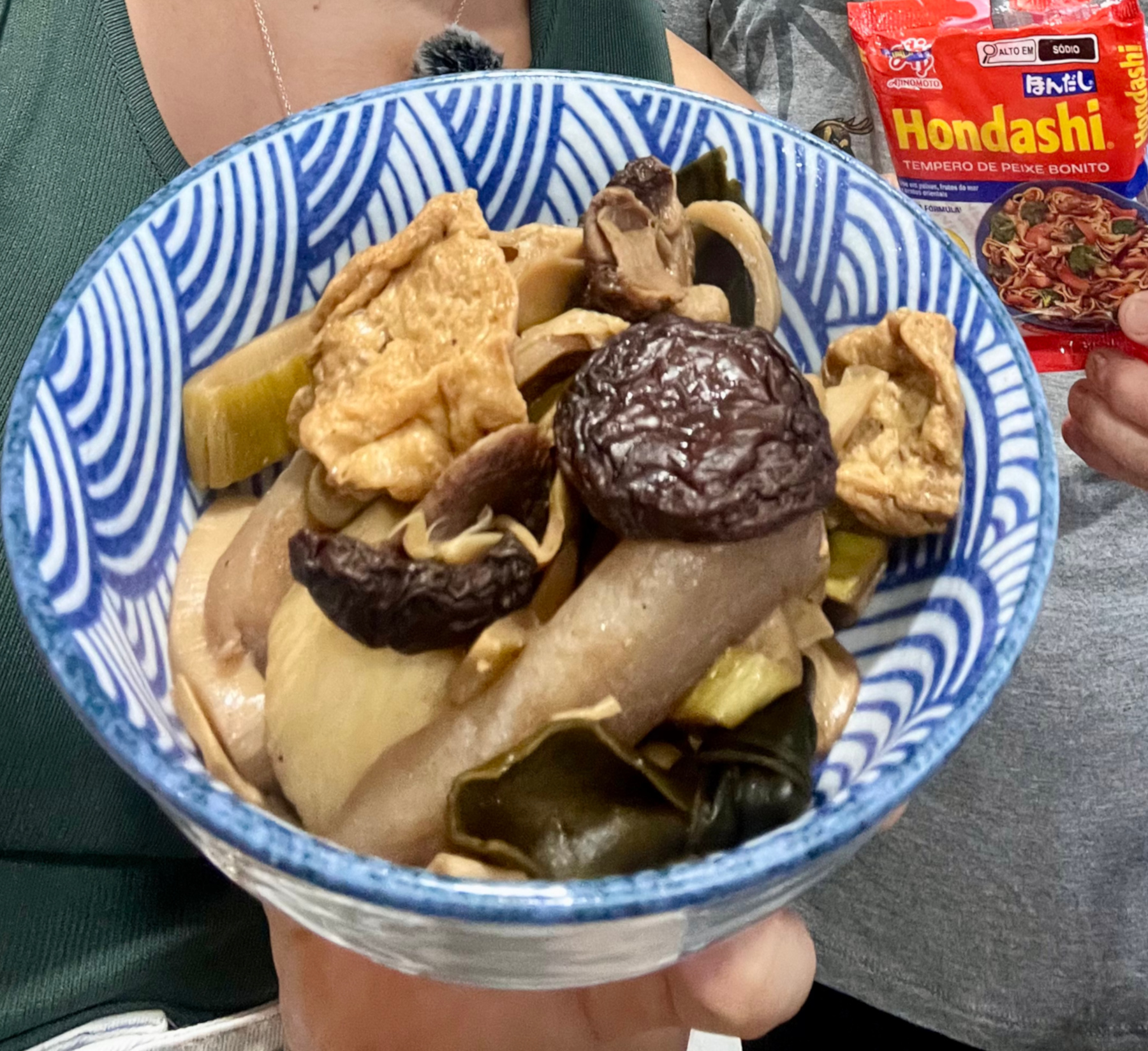 - 1 unidade de konnyaku, em tiras e aferventadas (350 g)